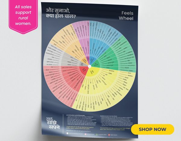 Feels Wheel is a great tool to improve ones emotional awareness. The bilingual (Hindi and English) version can used by mental health professionals, teachers, community spaces and more to reduce language barriers.