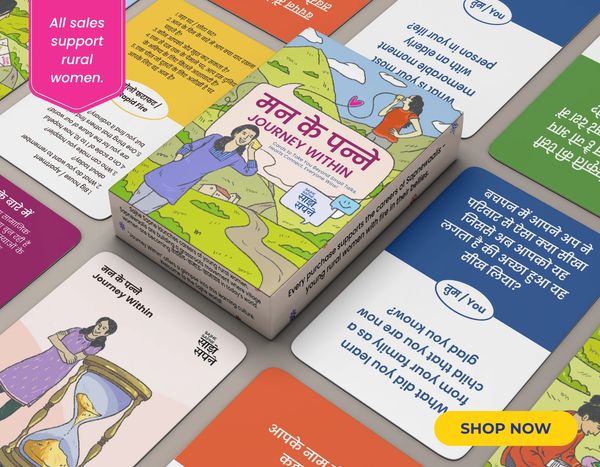 Mann Ke Panne is a bilingual (Hindi and English) conversation card game that can be played with family, partners, friends, colleagues, students and more.