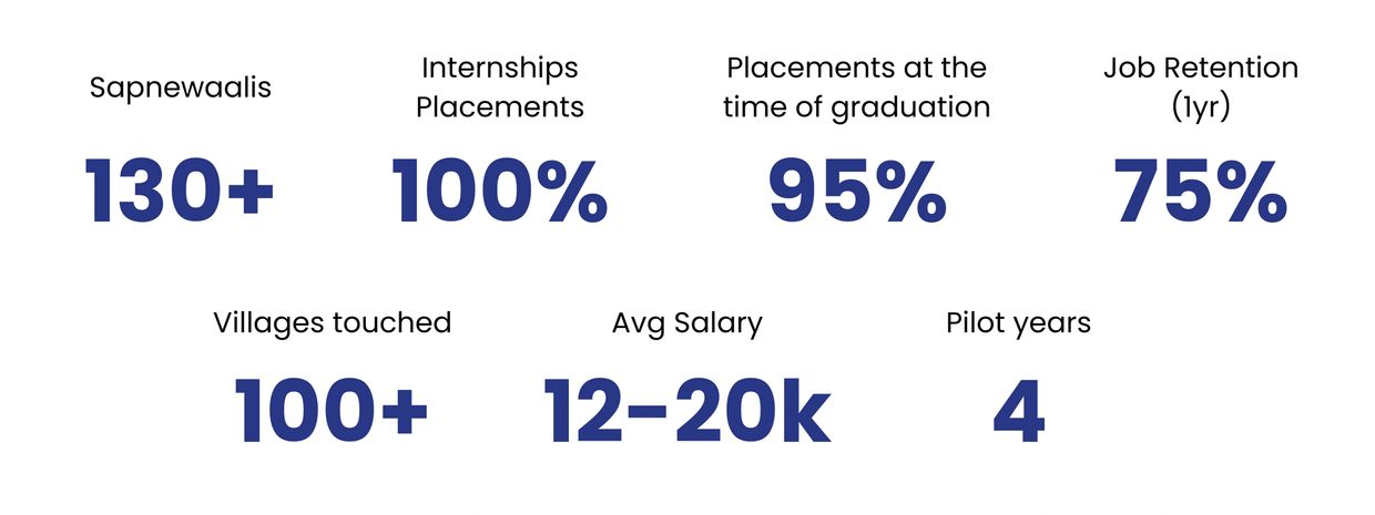 The course, designed with cutting-edge neuroscientific and feminist tools is delivered in local languages. Sapnewaalis become confident young professionals with an improved muscle for problem-solving.